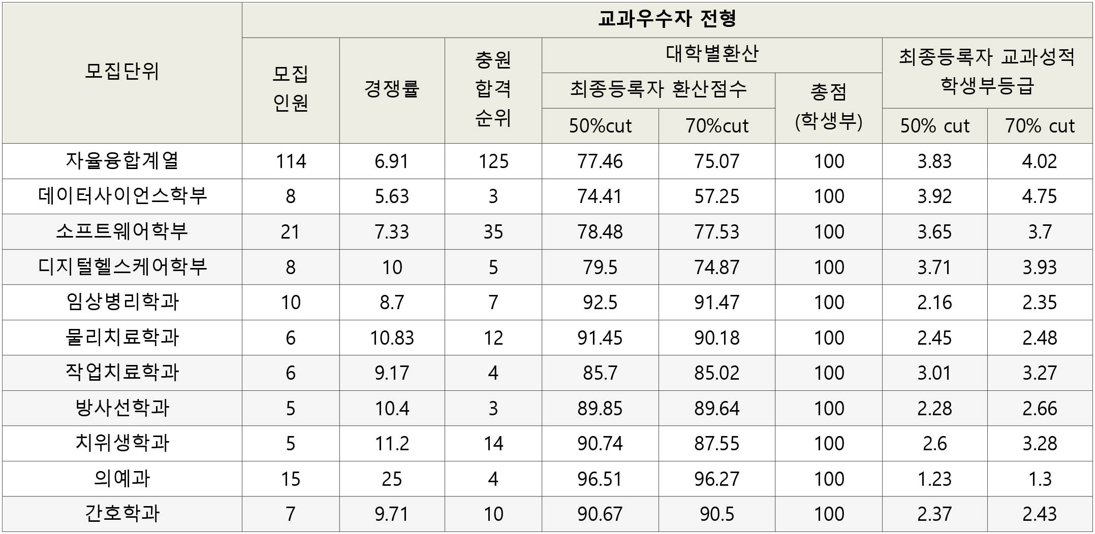 단순 학생부등급 비교이니 학과별 모집요강을 반드시 확인해 주세요.